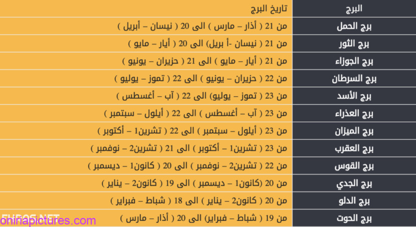 اعرف برجك الان من تاريخ ميلادك بارقام الشهور الميلادية.