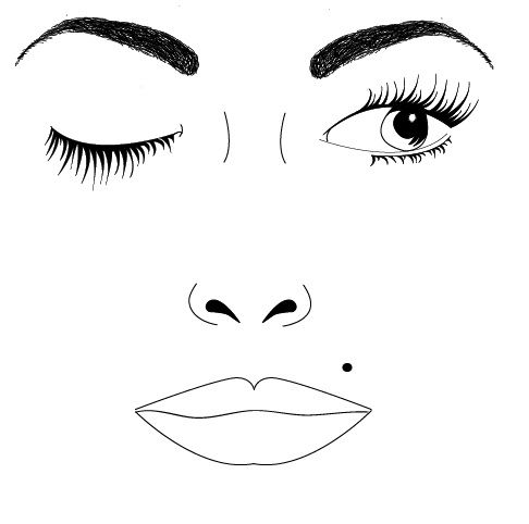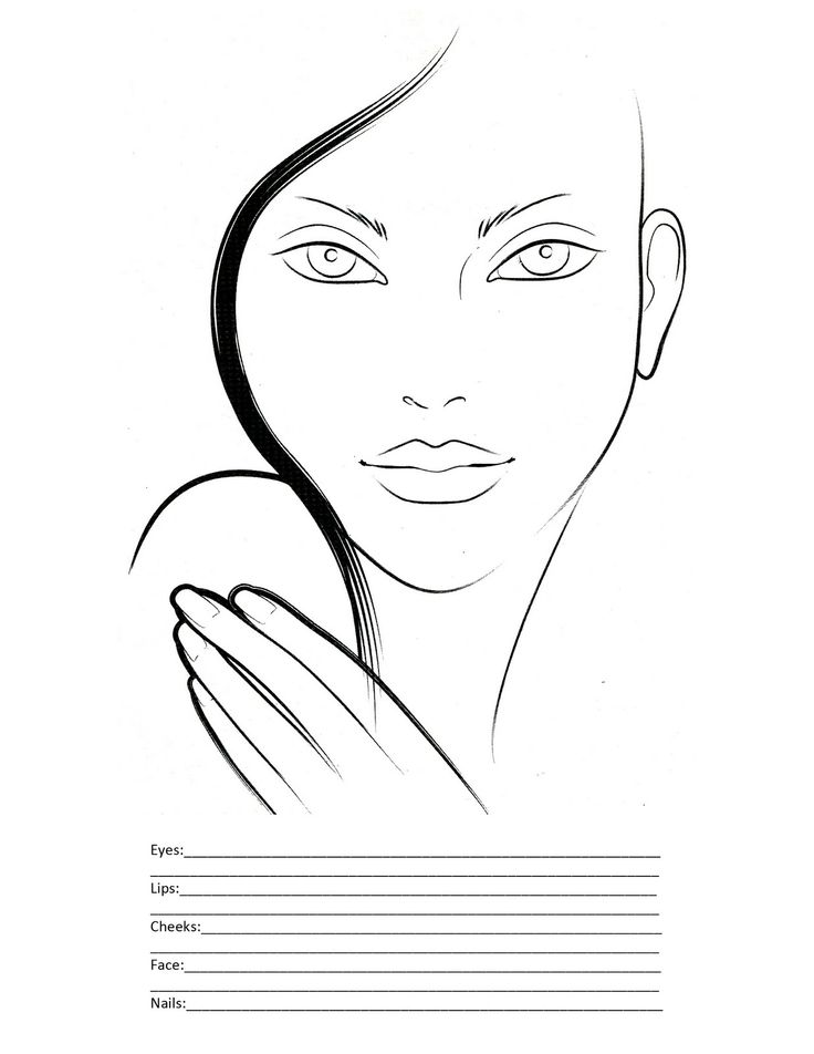 وجه للتدريب على المكياج. هذا الكاتلوج عبارة عن صورة وجه فاضيه يبدعوا فيها خبراء المكياج بابتكار لوكات جديدة باستخدام أدوات ماك ويكتبون كل شيء استخدموه في اللوك اللي على الورق. وجه سيليكون للتدريب مع مجموعة رموش وللتدرب على المكياج ١٨٦ ر س نظارة مع عدسات مكبرة وإضاءة. صفاء علي رضا.