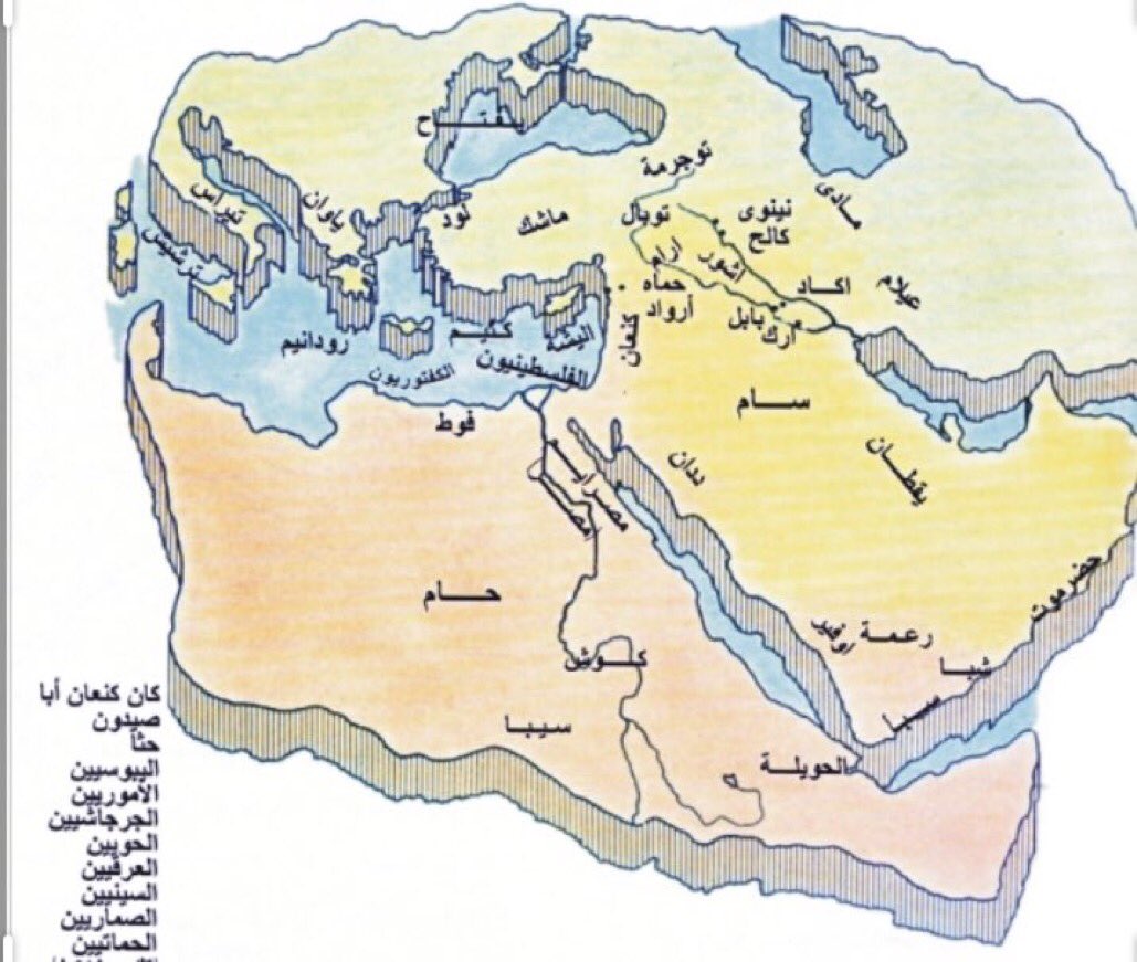 في الحقبة الاولى للارض ولد لنوح عليه السلام ثلاث ابناء مؤمين هم سام وحام ويافث وكان له ولد رابع وهو كنعان. قيل كان كافرا واسمه كنعان وقيل يام. ومثل ذلك في تفسير الطبري وفي تفسير البيضاوي أن اسمه كنعان وقال القرطبي ونادى نوح ابنه.